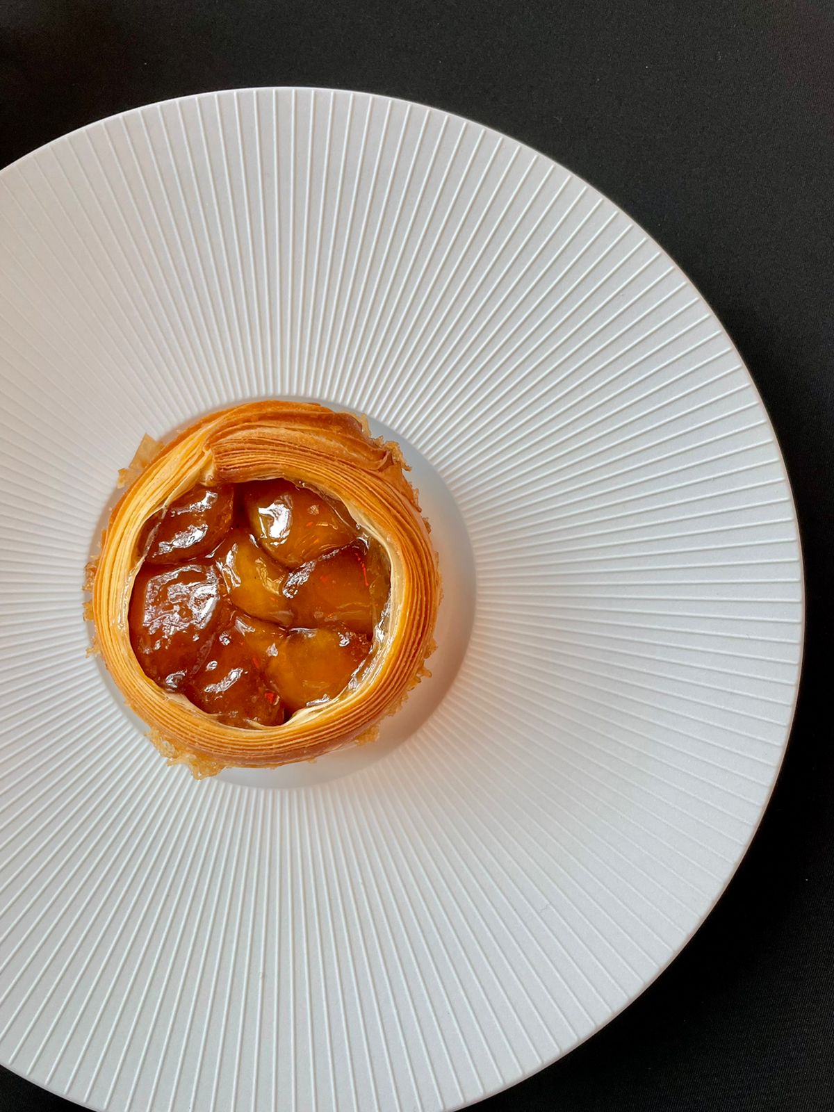 The apple tatin holds a cherished spot in the realm of desserts, stirring memories of childhood and comforting moments shared around the table. With its luscious, caramelized apples nestled atop a buttery, flaky pastry crust, each bite delivers a perfect harmony of sweetness and tartness. The caramelized sugar lends a rich depth, enhancing the natural sweetness of the apples, while a dollop of cool crème fraîche adds a refreshing contrast. This timeless dessert not only delights the palate but also evokes a sense of warmth and joy, reminiscent of carefree days and the simple pleasures of enjoying good food with loved ones.