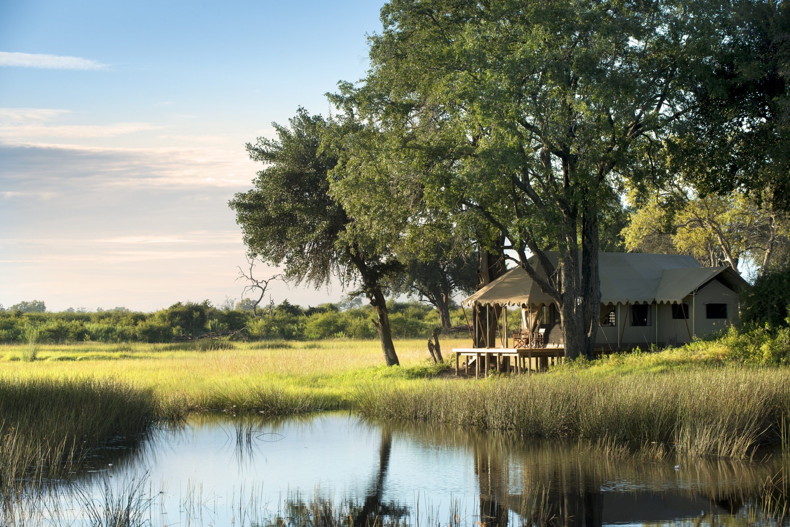 Due to its location in the Okavango Delta’s northern reaches, the permanent floodplain dominates the surrounding landscapes, with camp guests enjoying unobstructed views across the surrounding water channels.