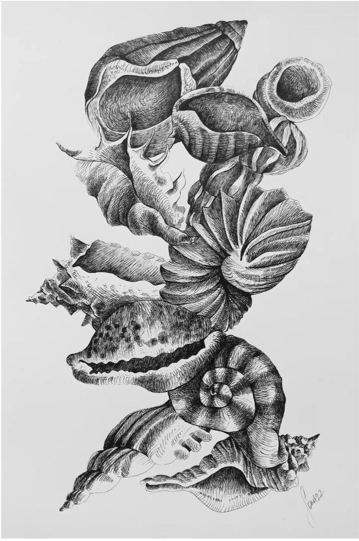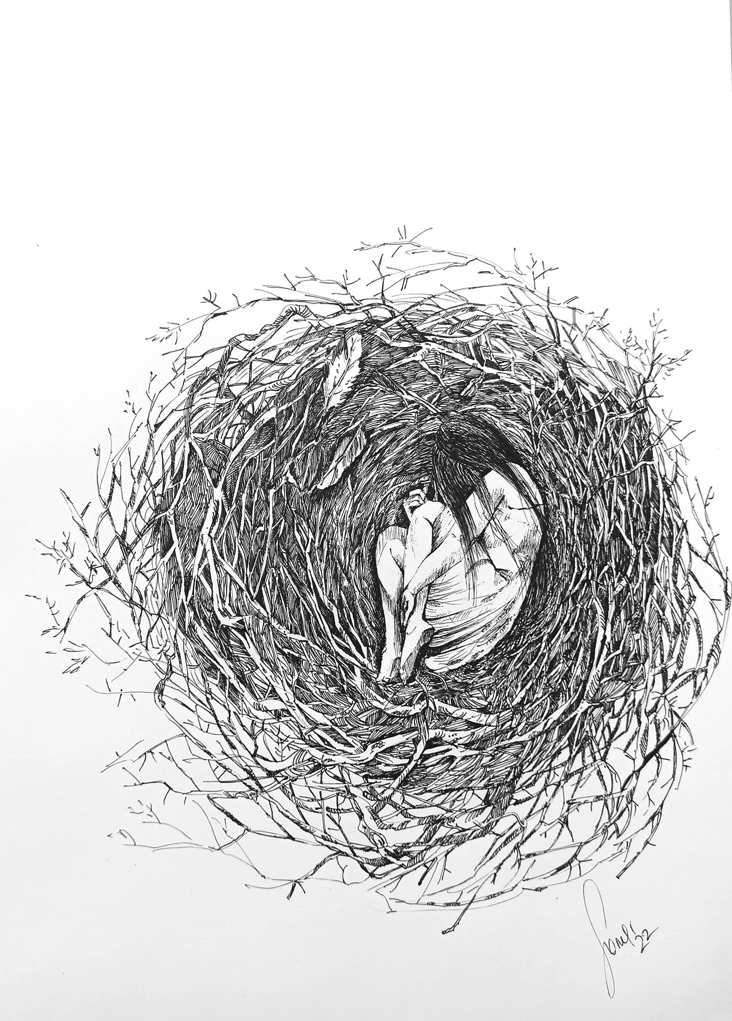I’ve been drawing since childhood, but started my professional career relatively recently, in 2020. I finished a course of academic drawing in ‘Creative’ design school in Lviv in 2014. I am using a wide range of different techniques to create drawings and paintings but i am best known for my very finely detailed pen drawings. My work is dominated by graphic works, especially floral themes. In 2020, i visited the Vynnyky Art School and atelier of local artist Lev Levkiv. My work was framed for first solo exhibition when the war started and i had to flee with my family. My journey ended in The Netherlands, in Helmond. Where now i live and work as an artist. There i became one of the participating artists of Make Art Not War. In addition to this collaboration, i had my first exhibition in Eindhoven where i exhibited my black and white pen drawings. Currently i exhibit my work in the Pop-Up Julia Ilkiv & Co. Art Gallery in Helmond. I work intuitively, with small accurate pen-strokes, and know how to convey my emotions onto paper.