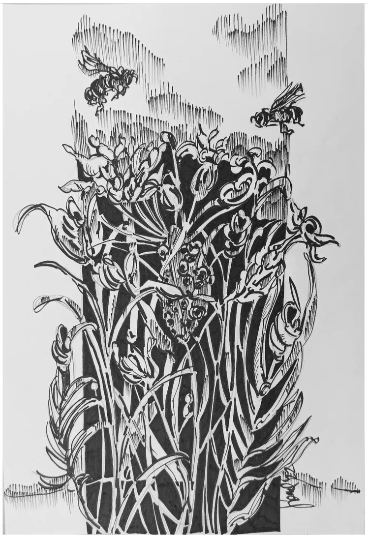 Julia Ilkiv (1987) was born and raised in the village of Skhidnytsia, Lviv region, Ukraine. She has been drawing since childhood, but started her professional career relatively recently, after moving to Vynnyky in 2020. She finished a course of academic drawing in ‘Creative’ design school in Lviv in 2014. Julia Ilkiv uses a wide range of different techniques to create drawings and paintings but is best known for her very finely detailed pen drawings. Her work is dominated by graphic works, especially floral themes.
