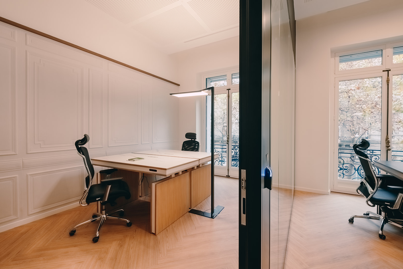 Executive offices, ranging from 9 m² to 20 m², are designed for individual use. Bathed in natural light and offering breathtaking views of the surrounding private mansions, they provide a discreet yet refined setting. Whether for daily use or high-level meetings, these spaces ensure a prestigious work environment.