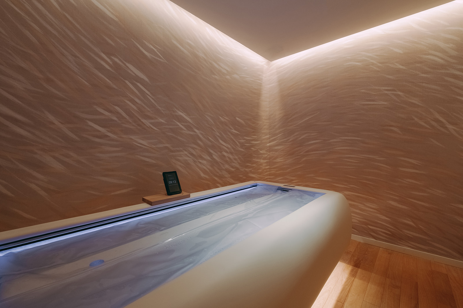 Lying on a patented heated water membrane, the body immediately experiences a sensation of weightlessness and suspension. Strategically positioned water jets provide a massaging effect, maximizing relaxation and encouraging tension release. This experience is enhanced by chromotherapy and an audio-guided meditation, immersing members into a state of complete relaxation.