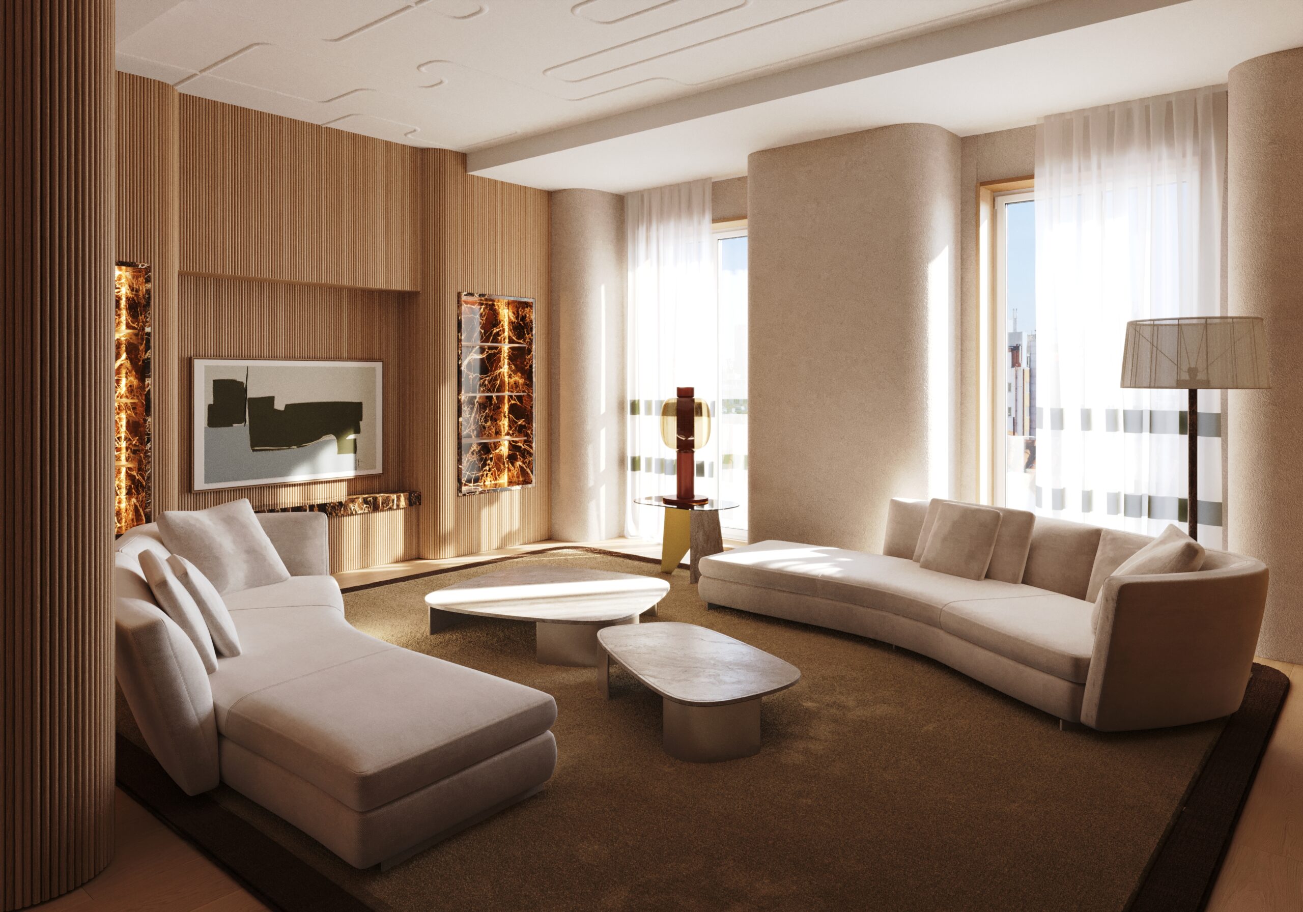 Patricia Urquiola lends her vision of purposeful elegance transforming every interior into a space that is as conceptually refined as it is emotionally resonant. The residences balance natural warmth with contemporary elegance. Interiors are defined by deep, earthy tones, tactile oak finishes, and bespoke details that create a sense of ease and refinement.