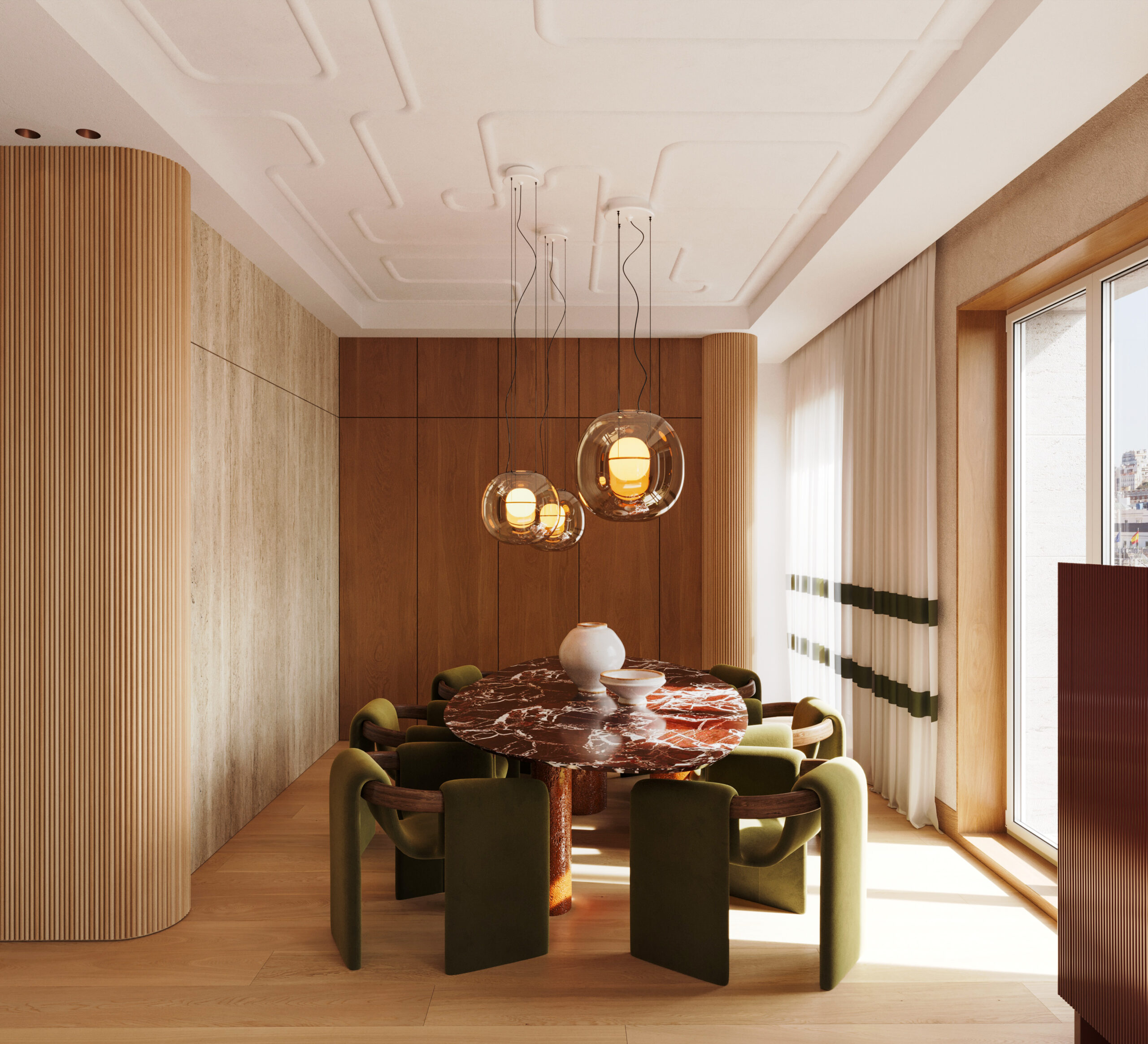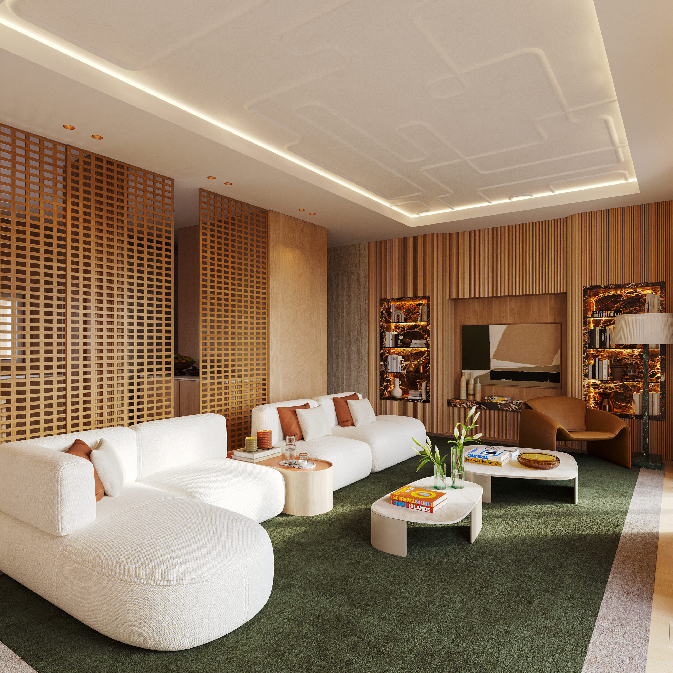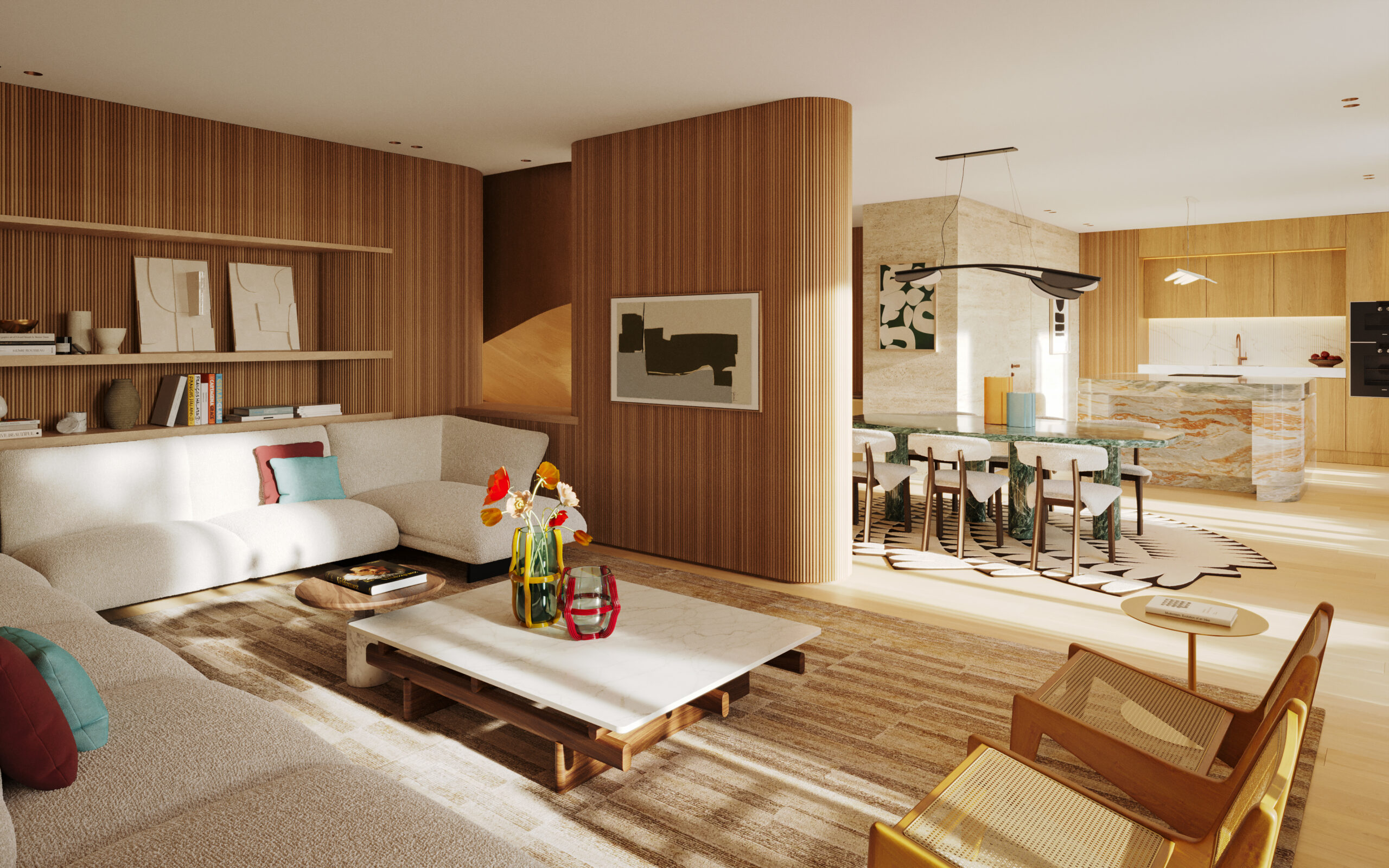 bespoke detailing, a sophisticated marble palette, and warm, tactile finishes that imbue each space with