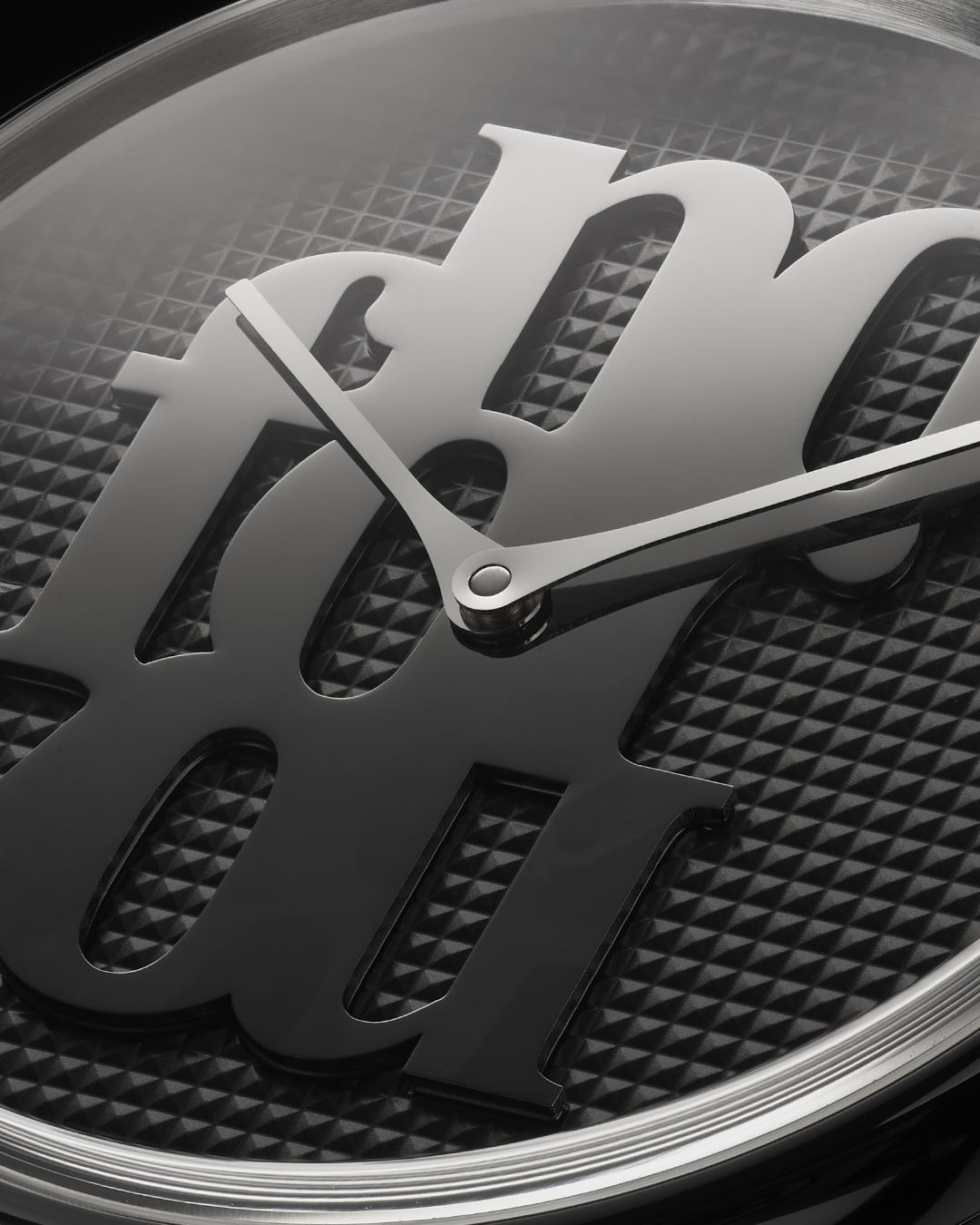 Dial Inspired by Monica Bonvicini’s artworks. Black Clous de Paris guilloché with a central black mirror-polished “not for you” appliqué.