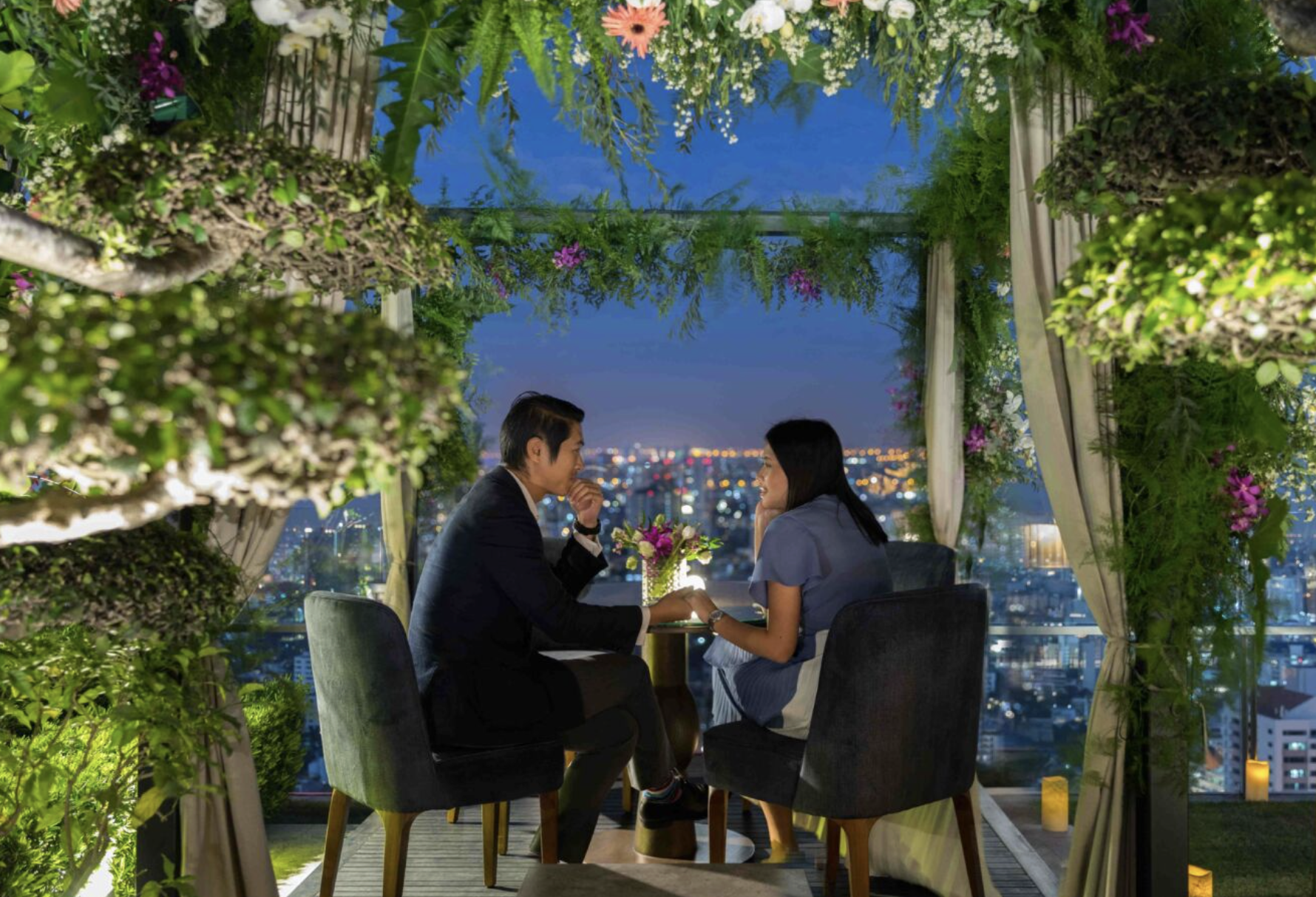 For an even more exclusive experience, couples may elevate the occasion by choosing a private rooftop cabana offering a romantic 4-course Valentine’s dinner. These intimate settings are adorned with fragrant blooms, creating a delightful escape complemented by captivating views of Bangkok. The curated romantic Valentine’s set menu is inspired by the theme of sustainable love, crafted by our talented chefs using premium local ingredients to highlight their natural qualities and showcase the unique flavours Thailand has to offer.