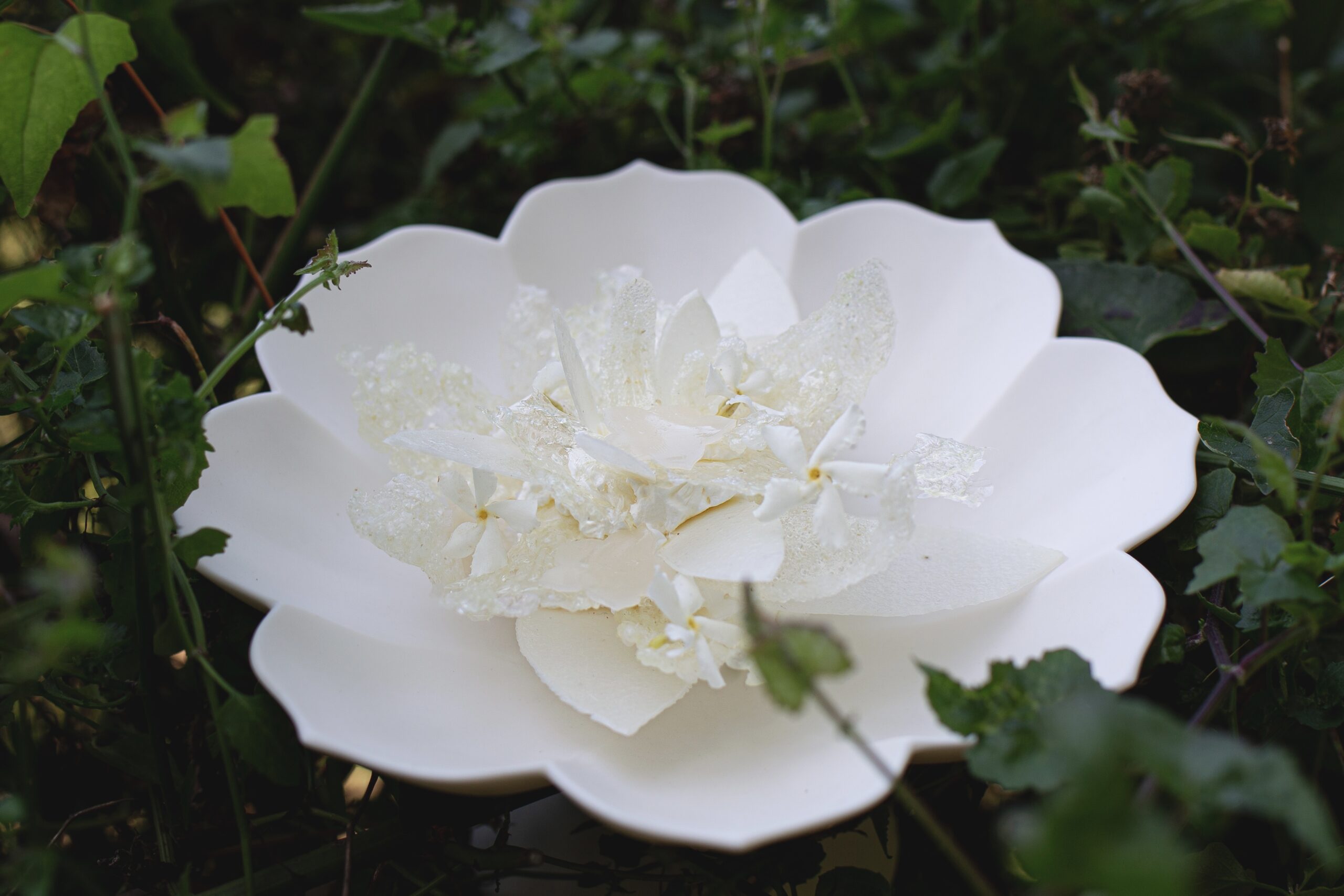 I have a deep affection for this dessert centered around jasmine and rice. It’s a monochromatic creation, gleaming in pure white, reminiscent of a flower, exuding sensuality and delicateness. It evokes feelings of purity and poetry. I’ve managed to capture the wild essence of jasmine and imbue it with a sense of ‘wild docility.’
