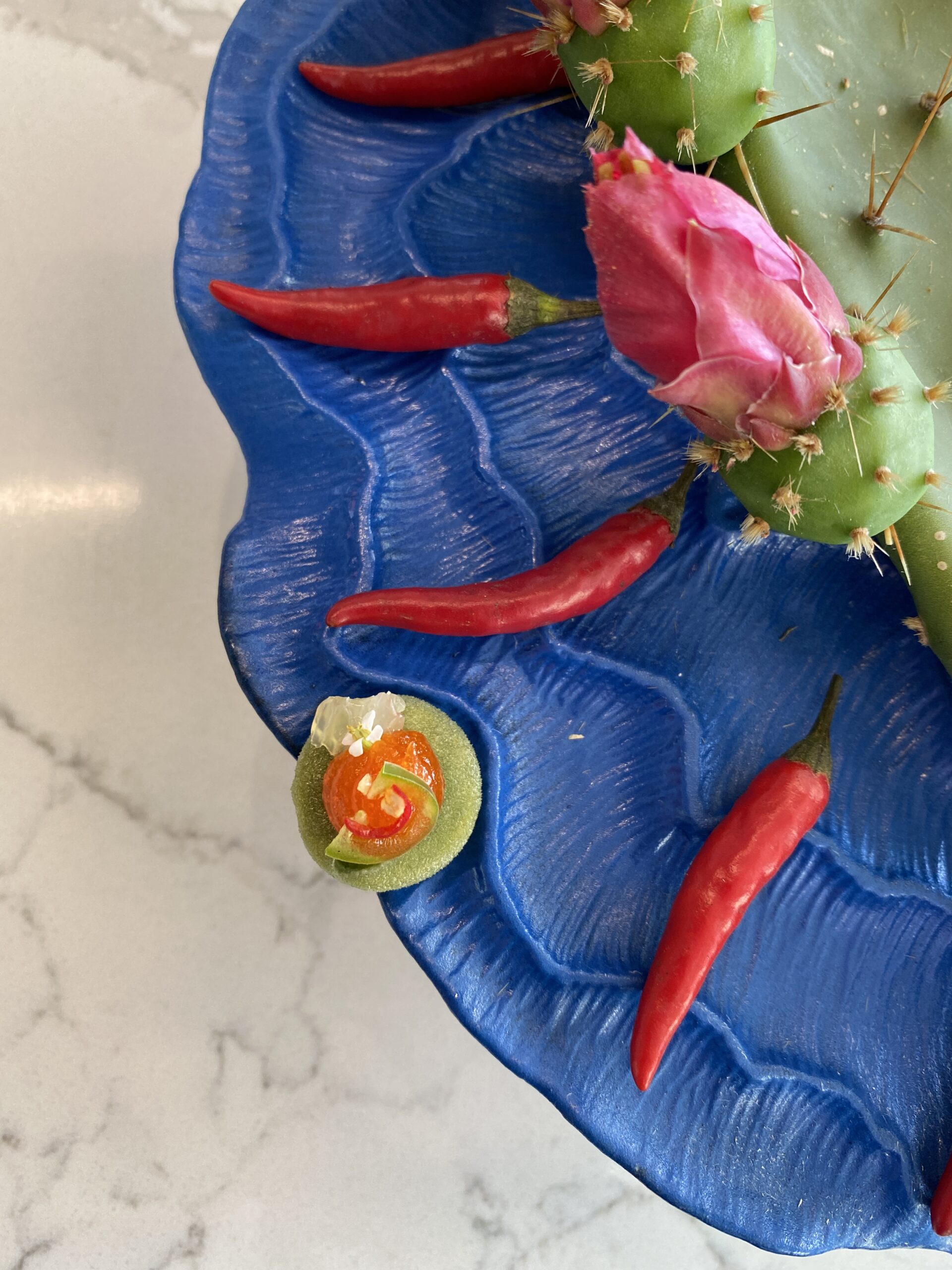 When the pandemic emerged, Marius found himself in the Occitanie region in the south of France during the lockdown. During the day, he immersed himself in the world of permaculture and bio-dynamic farming, connecting with the earth and attuning himself to the rhythms of nature. After the lock-down, Mirazur beckoned him, prompting him to align his pastry expertise with the restaurant’s environmentally-conscious approach. Now, alongside Chef Mauro Colagreco, he is dedicated to a vision—one that seeks to embrace the intangible, the subtle intricacies within the realm of the living.