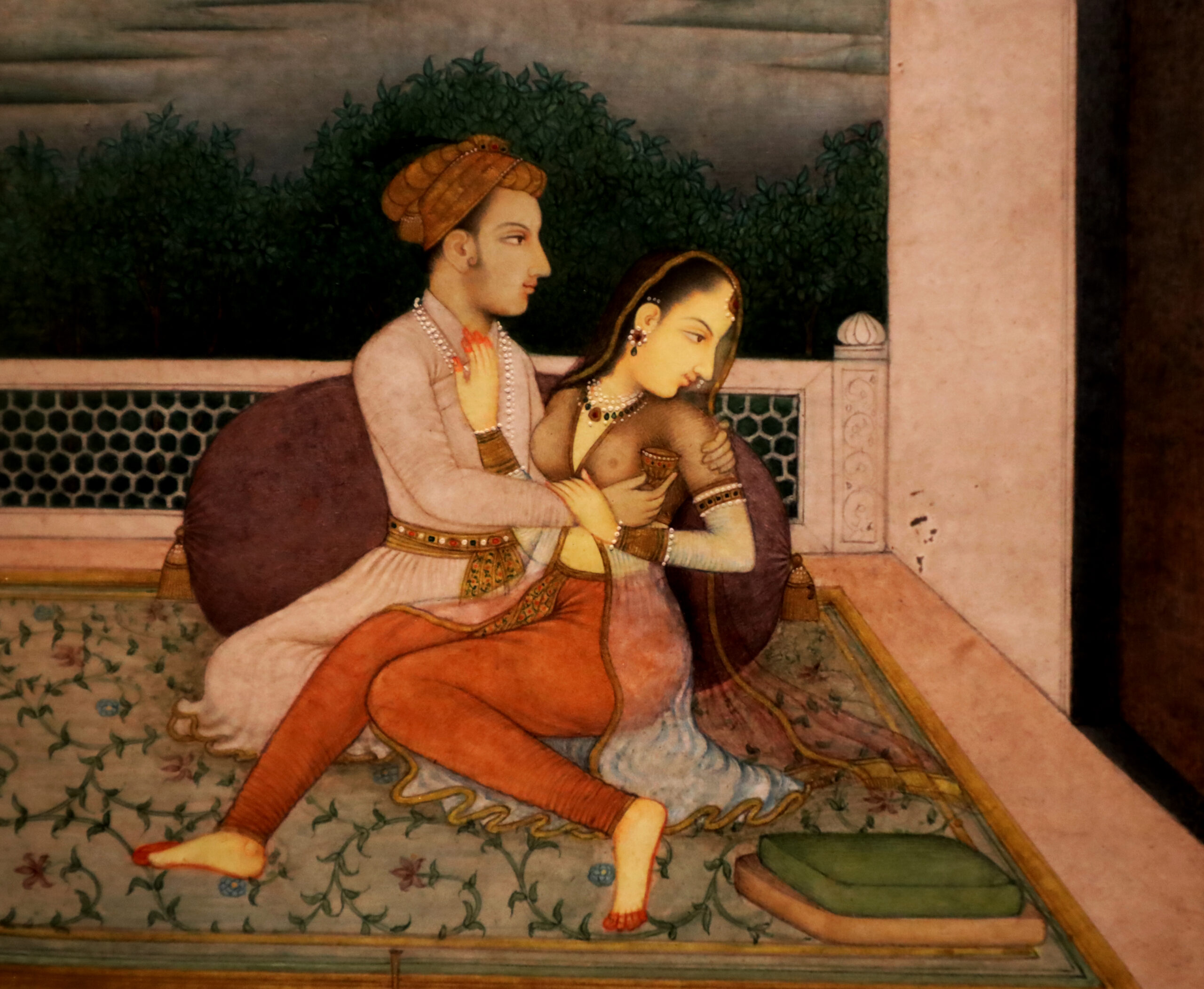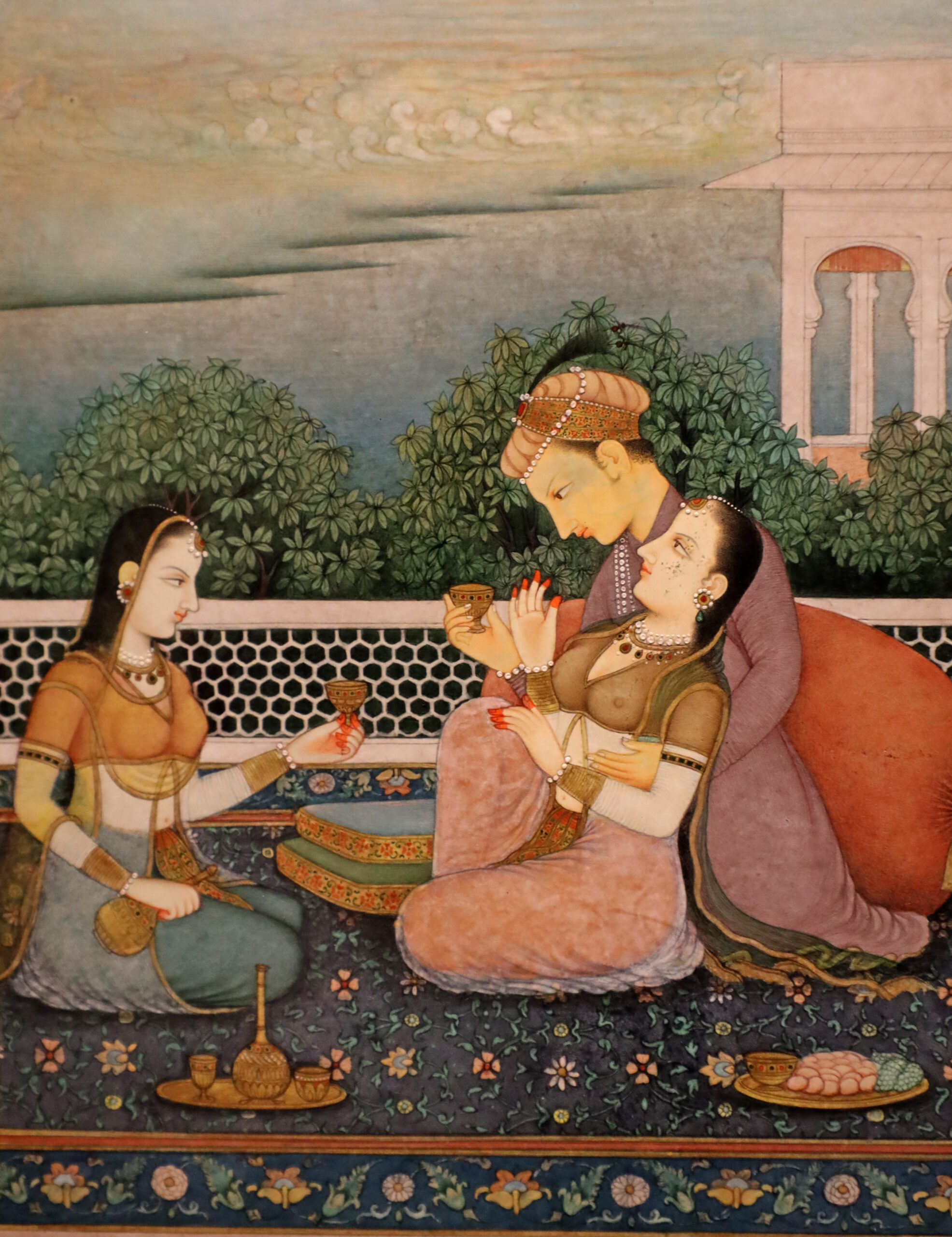 These exquisite miniature paintings are part of the significant Gyan Miniature Collection, which showcases a variety of expressions, many of which depict intimate and amorous scenes within royal harems. The depicted scene emphasizes the luxurious and private world of the harem, highlighting the themes of romance and leisure that were integral to courtly life. These paintings capture the opulence, refinement, and emotional expressions of their time, offering a glimpse into the intimate and sensual dimensions of palace life, while also serving as timeless records of Mughal and Rajput artistic traditions.