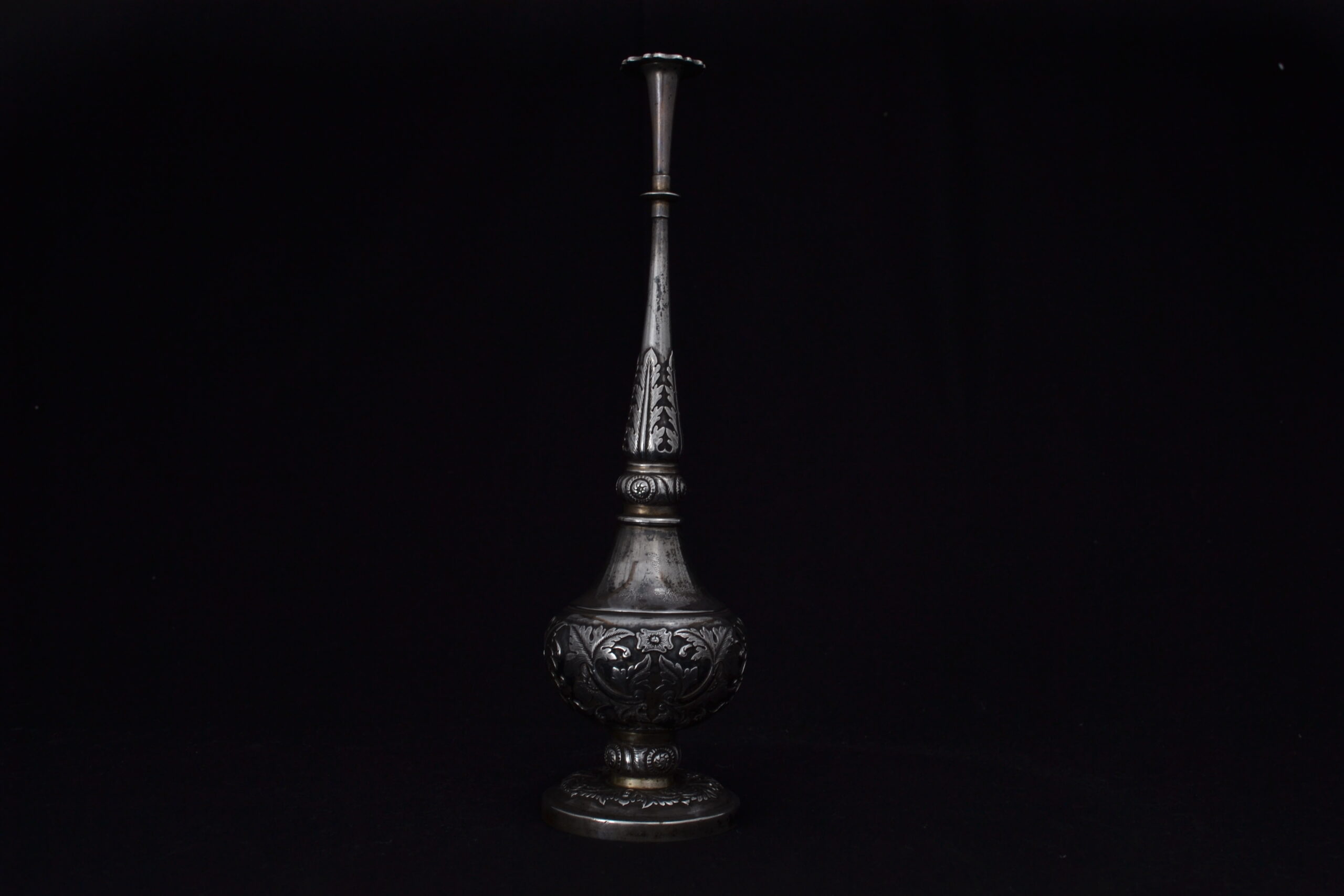 This antique silver Gulab Pash (rose water sprinkler) has one of its functions as a symbol of love in Indian households. Women used it to sprinkle rose water on their husbands as a gesture of affection and to welcome them home. The sweet fragrance of rose water symbolized purity, warmth, and the blossoming of love, making it a timeless expression of care and devotion.