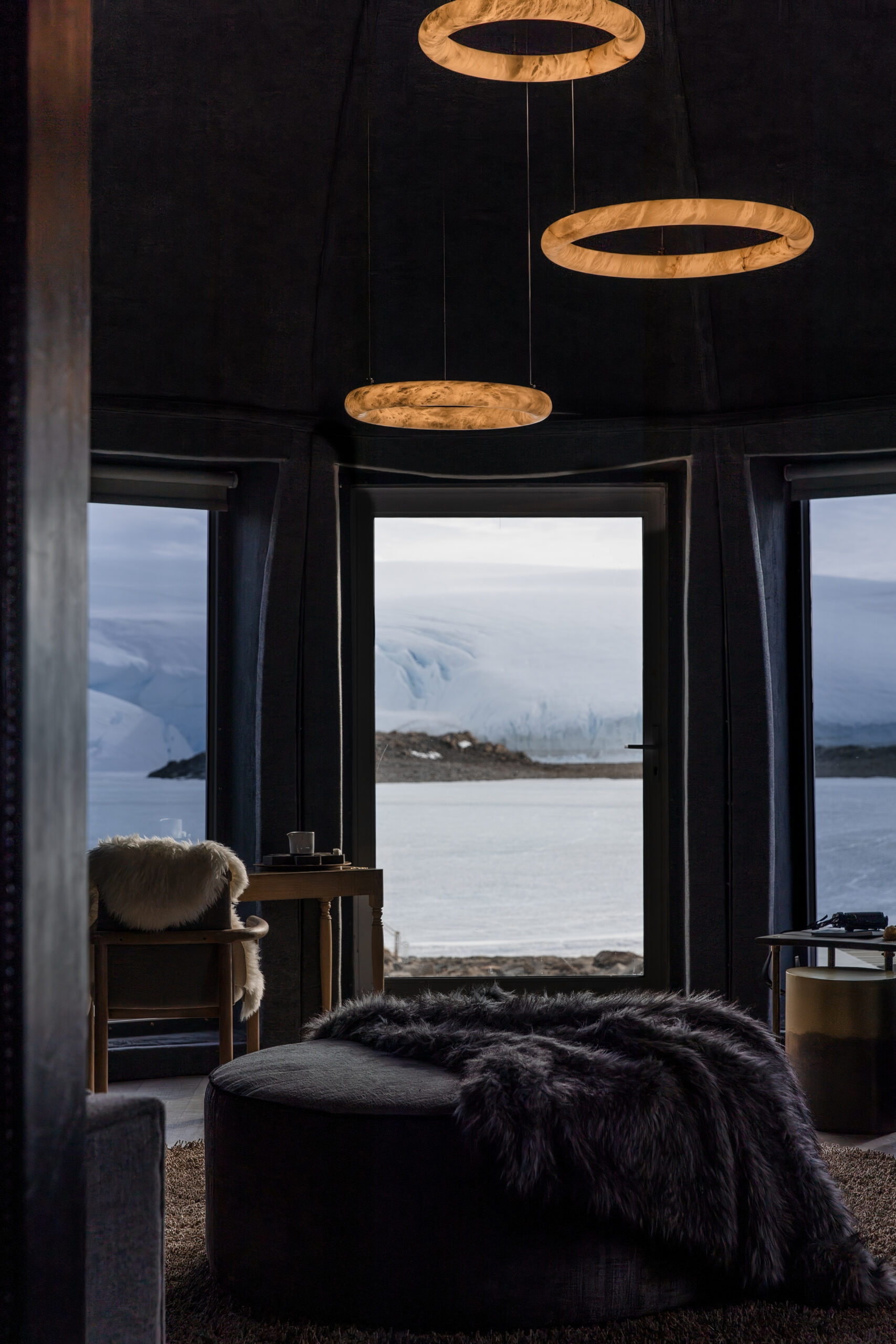 This season, the flagship has been transformed into a space that balances the raw power of Antarctica with an atmosphere of refined escapism. Nestled in the Schirmacher Oasis—a rare ice-free haven shared by less than 3% of the continent—the camp looks out over dramatic blue cliffs and a necklace of more than a hundred pristine freshwater lakes. The newly reimagined pods offer a cinematic hideout where warmth and elegance invite guests to slow down, providing a soft counterbalance to the ancient, jagged beauty just beyond the window.
